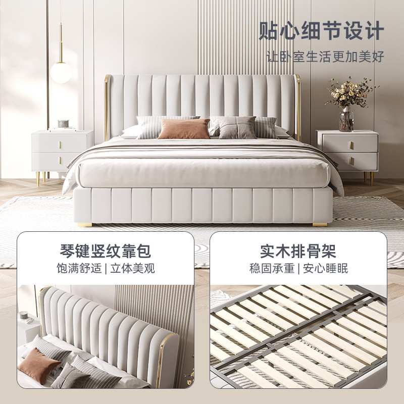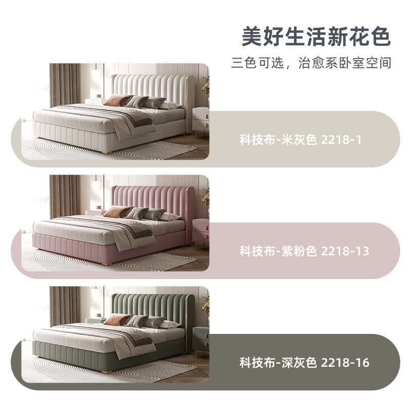 冬熊现代简约落地款布艺床主卧室双人婚床1.8米意式轻奢科技布床