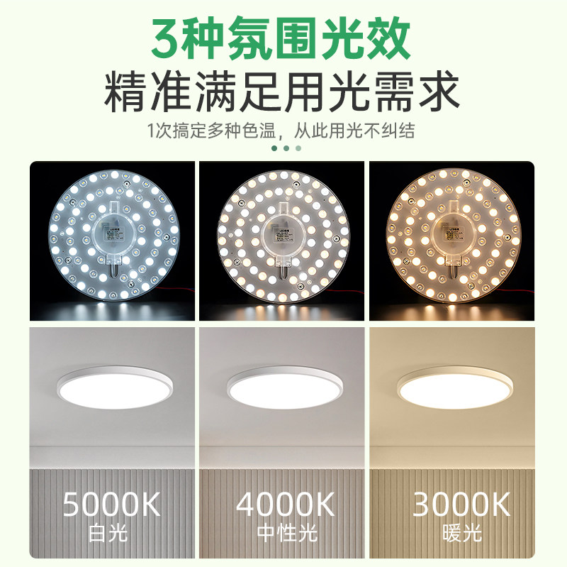 吸顶灯led灯芯磁吸替换光源全光谱卧室圆形灯板灯条护眼三色灯盘