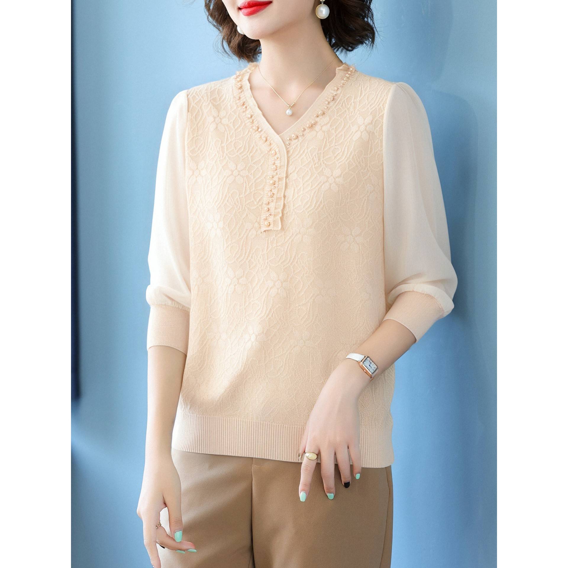 年轻妈妈洋气针织打底小衫中年女装春秋装上衣中老年大码长袖T恤