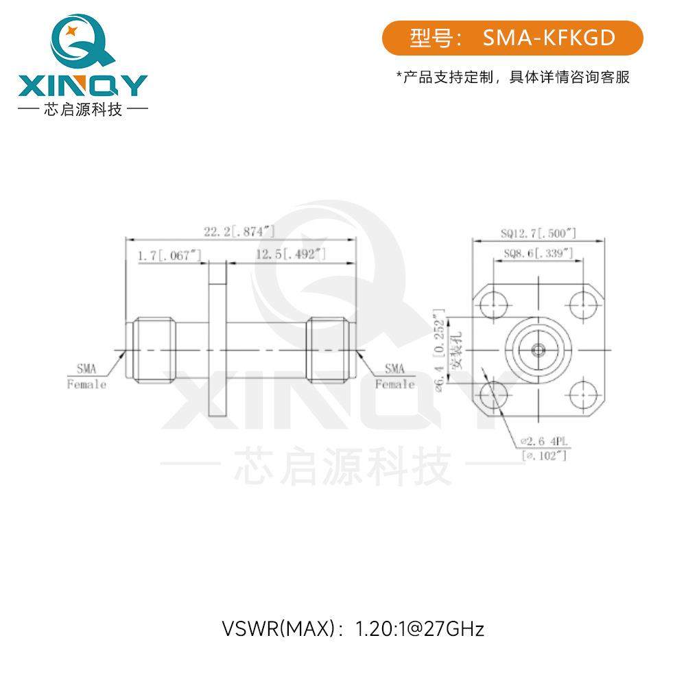 XINQYsma-kfk毫米波射频转接器SMA法兰固定连接头27g母转母头