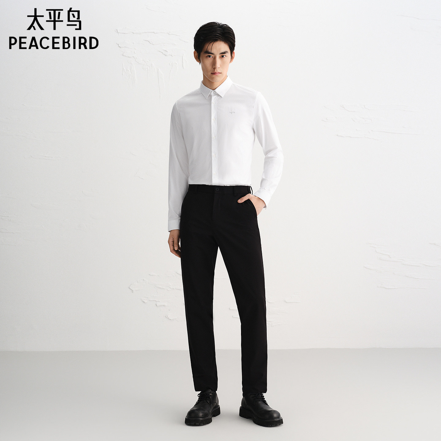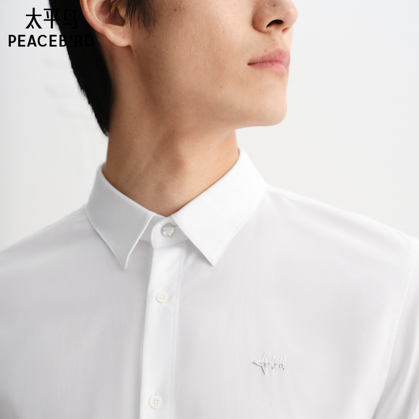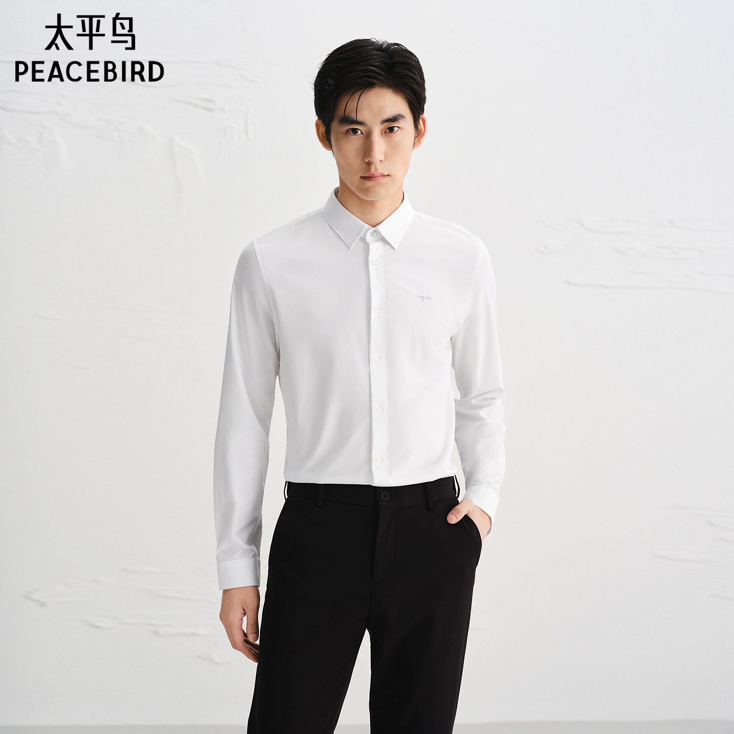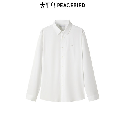 太平鸟男装 休闲衬衫刺绣精致商务休闲秋季斯文长袖白衬衫