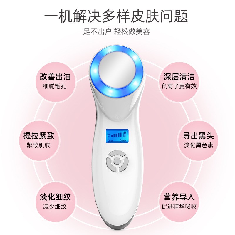 冷热美容仪器脸部按摩冰导入仪红蓝光子J嫩肤充电冰锤面部冰敷舒