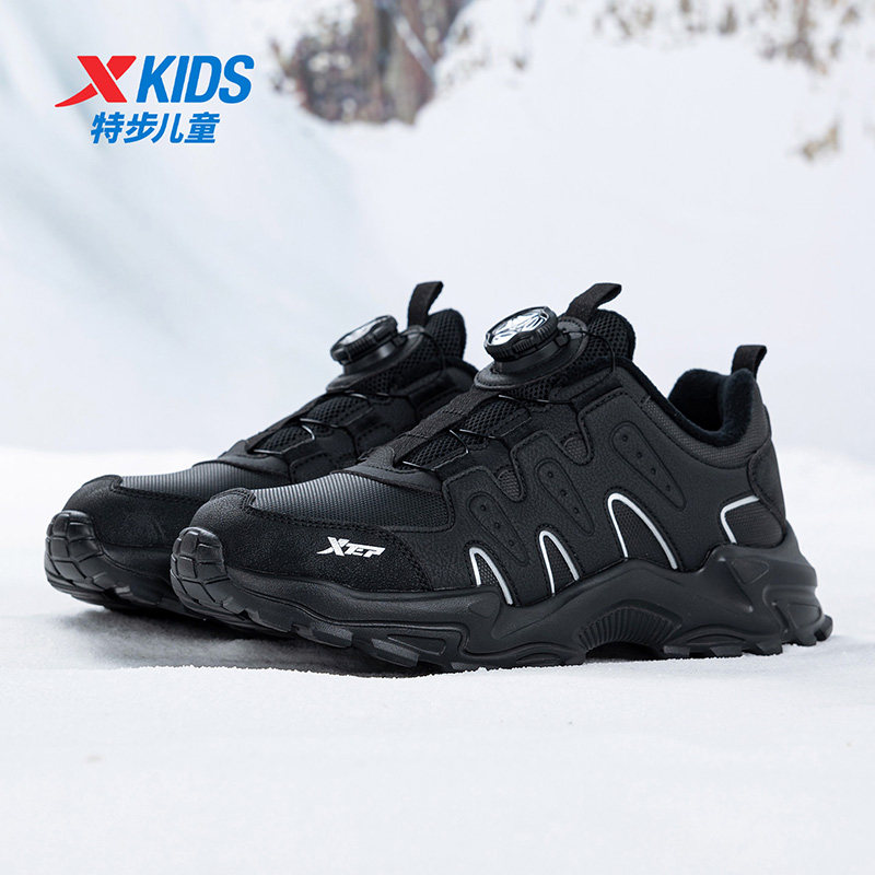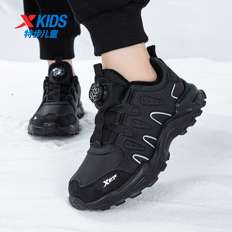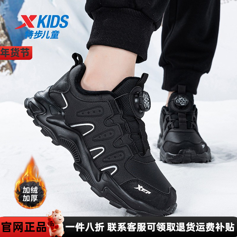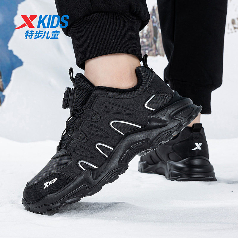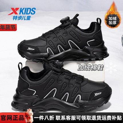 特步儿童童鞋运动跑步鞋男童秋冬新款皮面加绒保暖棉鞋二棉雪地靴