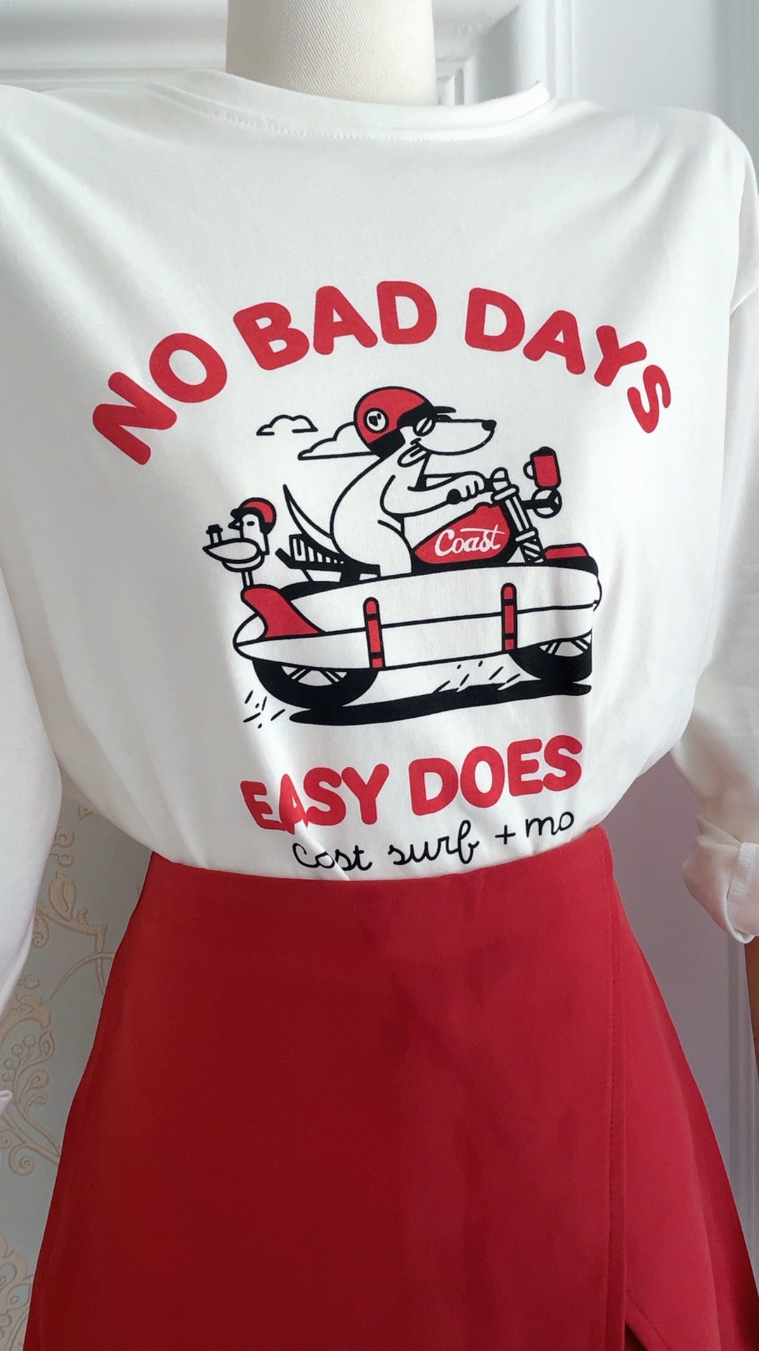 2025秋新款韩国东大门卡通宽松中长休闲狗狗字母T恤打底衫上衣