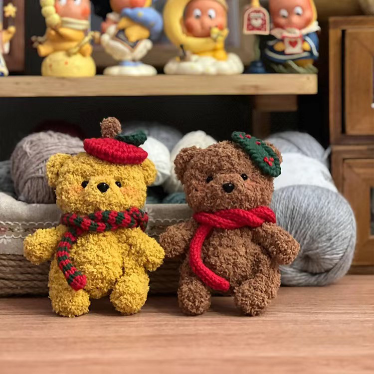 手工新年礼物可爱小熊小兔钥匙扣包包挂件钩针玩偶毛线diy材料包
