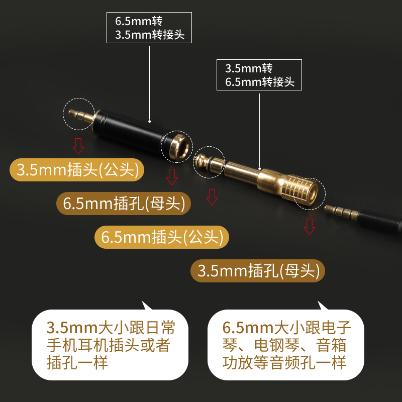 电钢琴电子琴耳机转接头3.5母转6.5公音频线转换器乐器