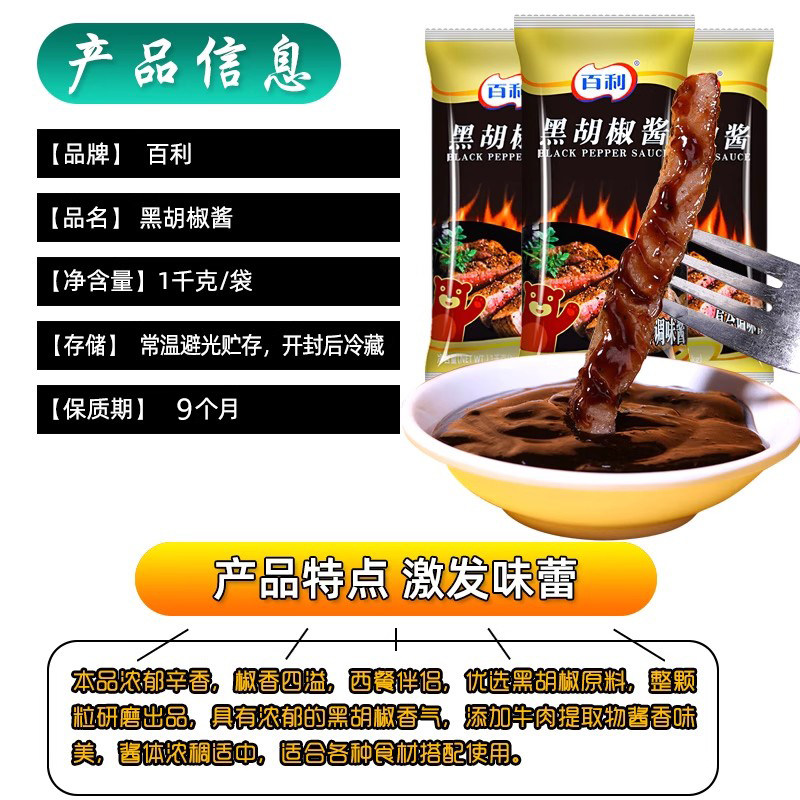 百利黑胡椒酱1kg烤肉胡椒酱拌饭火锅蘸料黑椒牛排酱汉堡手抓饼酱