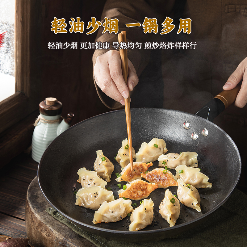 平底煎锅龟纹铸铁无涂层陆川铁锅