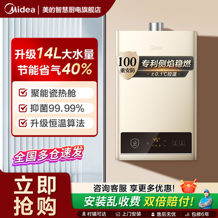 美的燃气热水器家用天然液化气14升16升恒温智能电器官方旗舰店