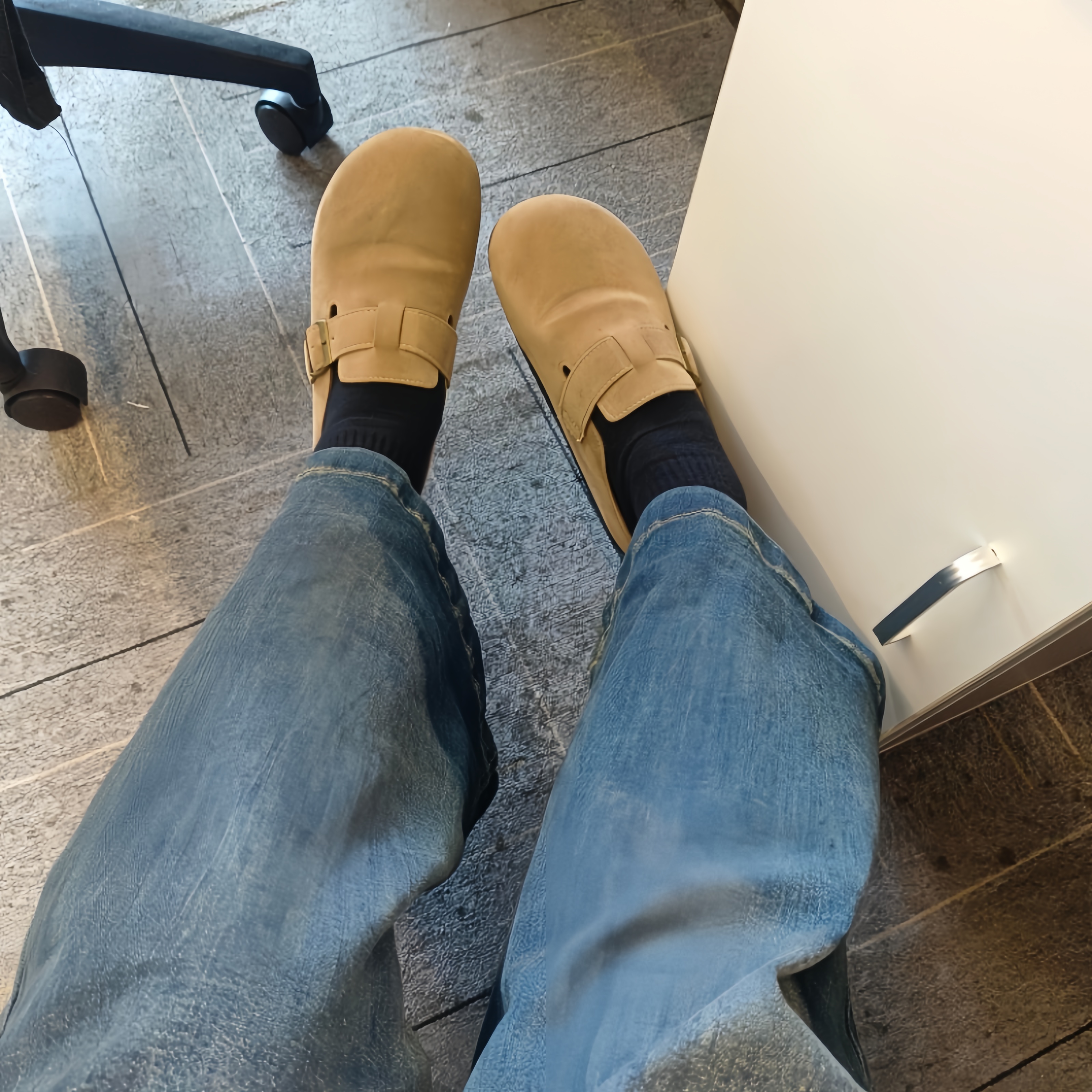 厚底勃肯鞋女外穿2025新款复古包头半拖鞋女圆头一脚蹬复古懒人鞋