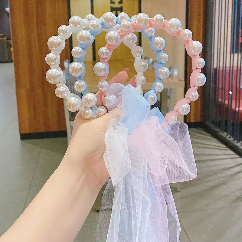 儿童珍珠飘带发箍女夏可爱女宝宝网纱发饰女童公主蝴蝶结绑发头饰