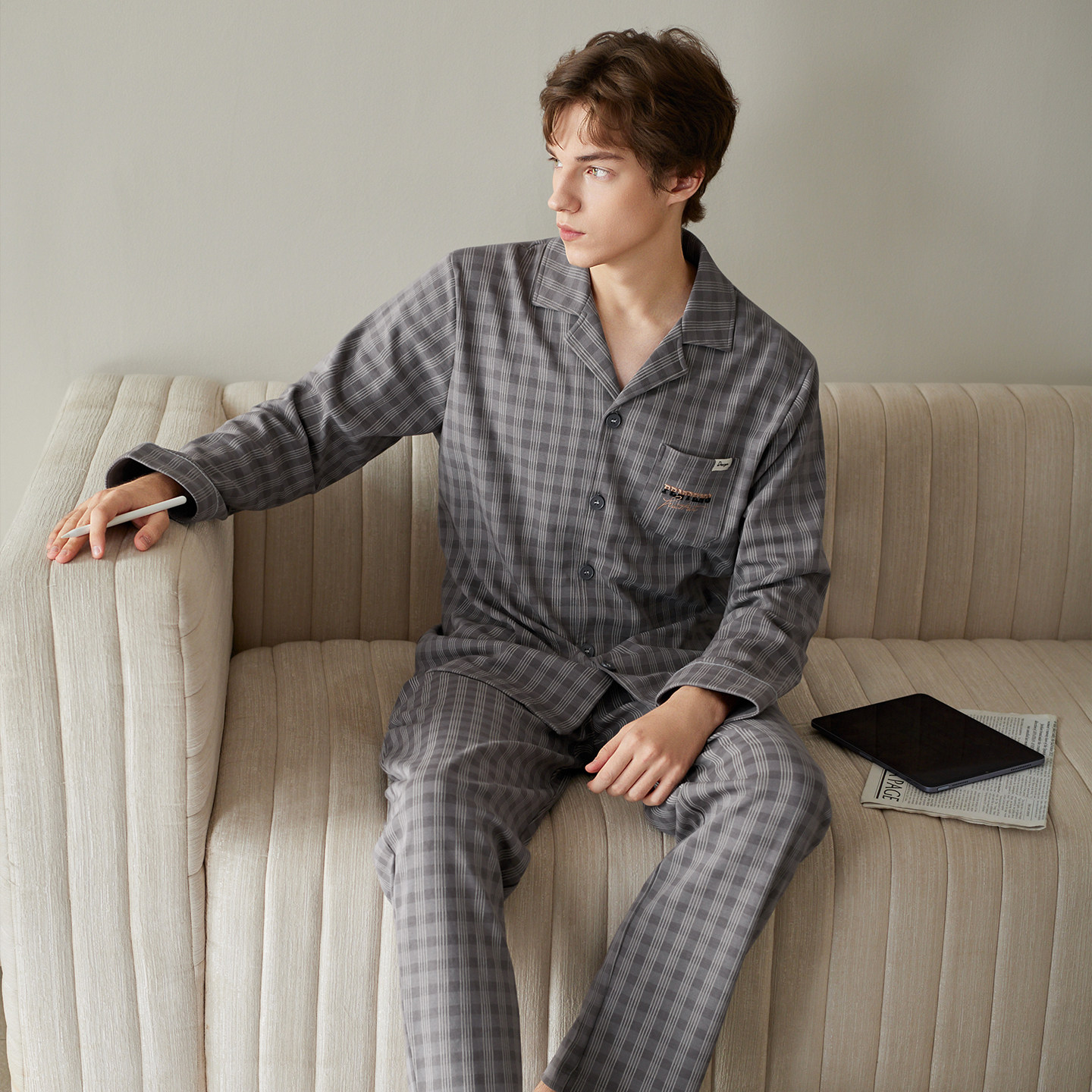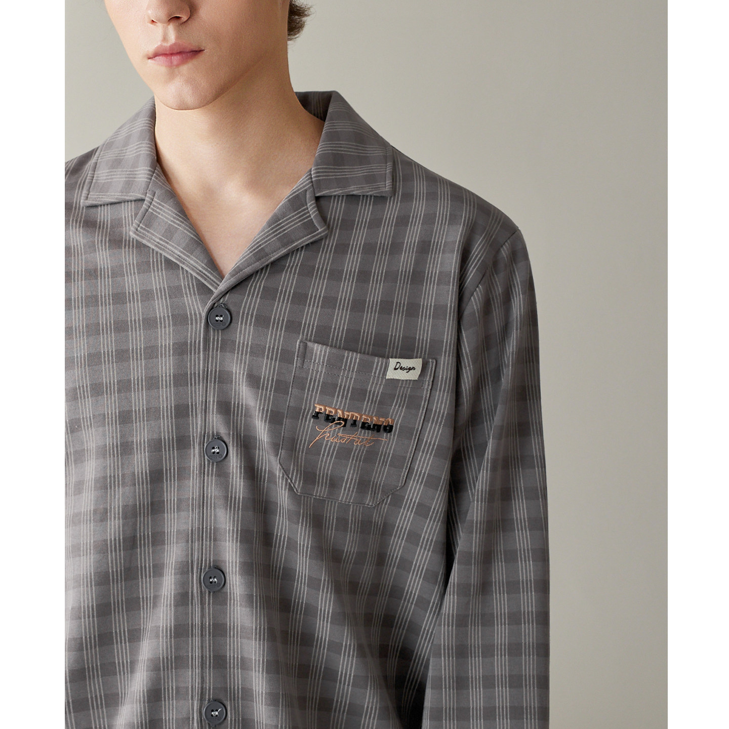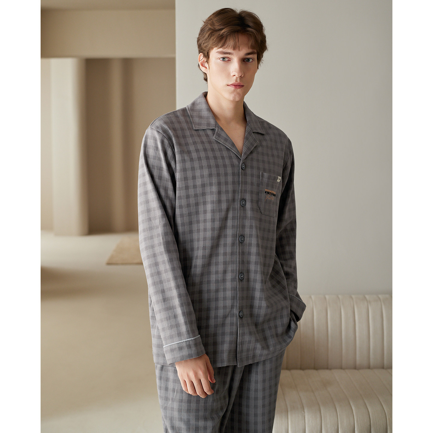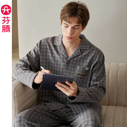 芬腾男士睡衣纯棉格子长袖家居服