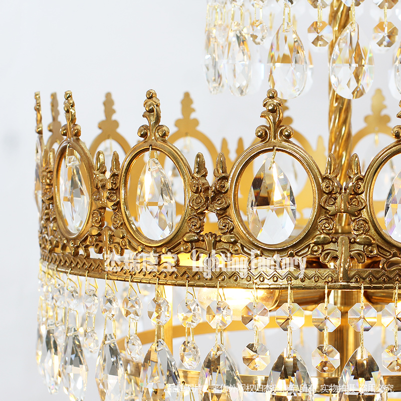 杰瑞唐宝法式复古全铜皇冠水晶小吊灯卧室床头过道玄关客厅餐厅灯