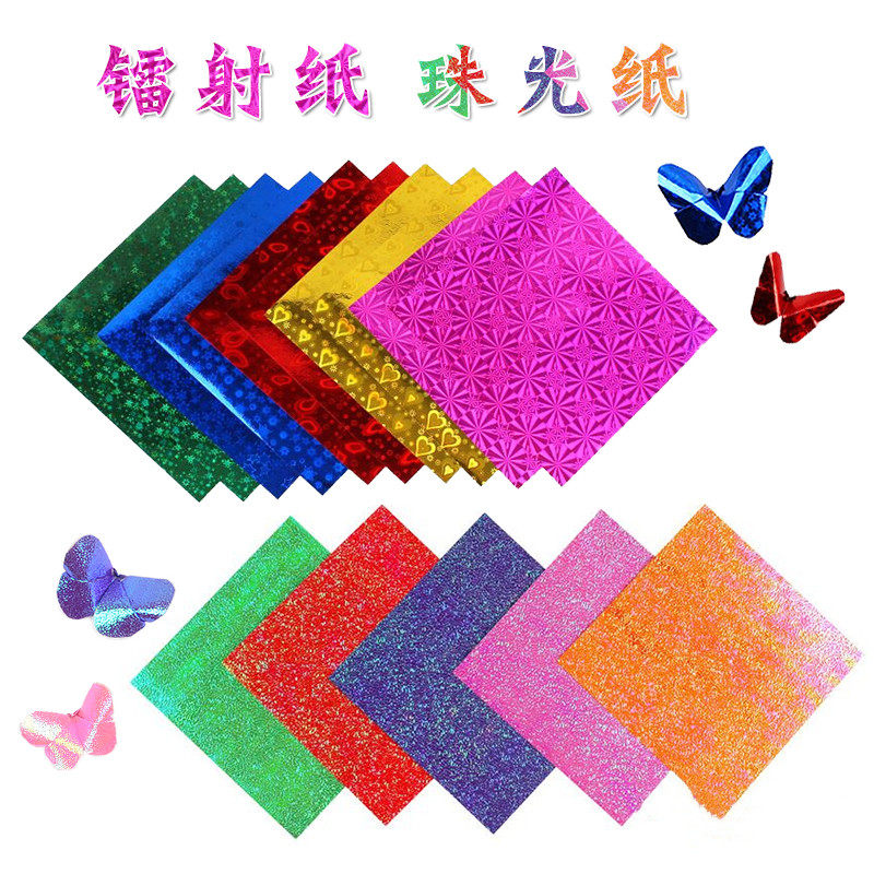 镭射纸闪光纸手工纸鹤荧光纸彩纸折纸专用珠光纸儿童亮光亮纸电光纸幼儿园彩色纸剪纸闪亮亮片纸夜光纸