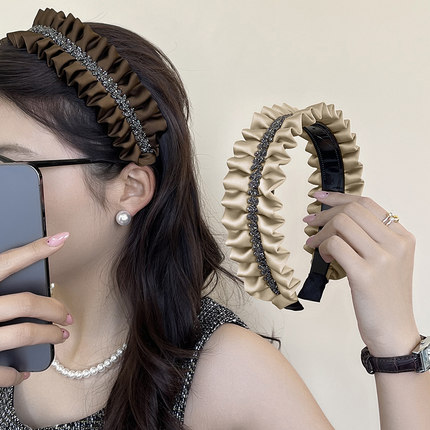 法式简约褶皱发卡波浪宽边压发头箍网红女外出高颅顶发箍韩国发饰