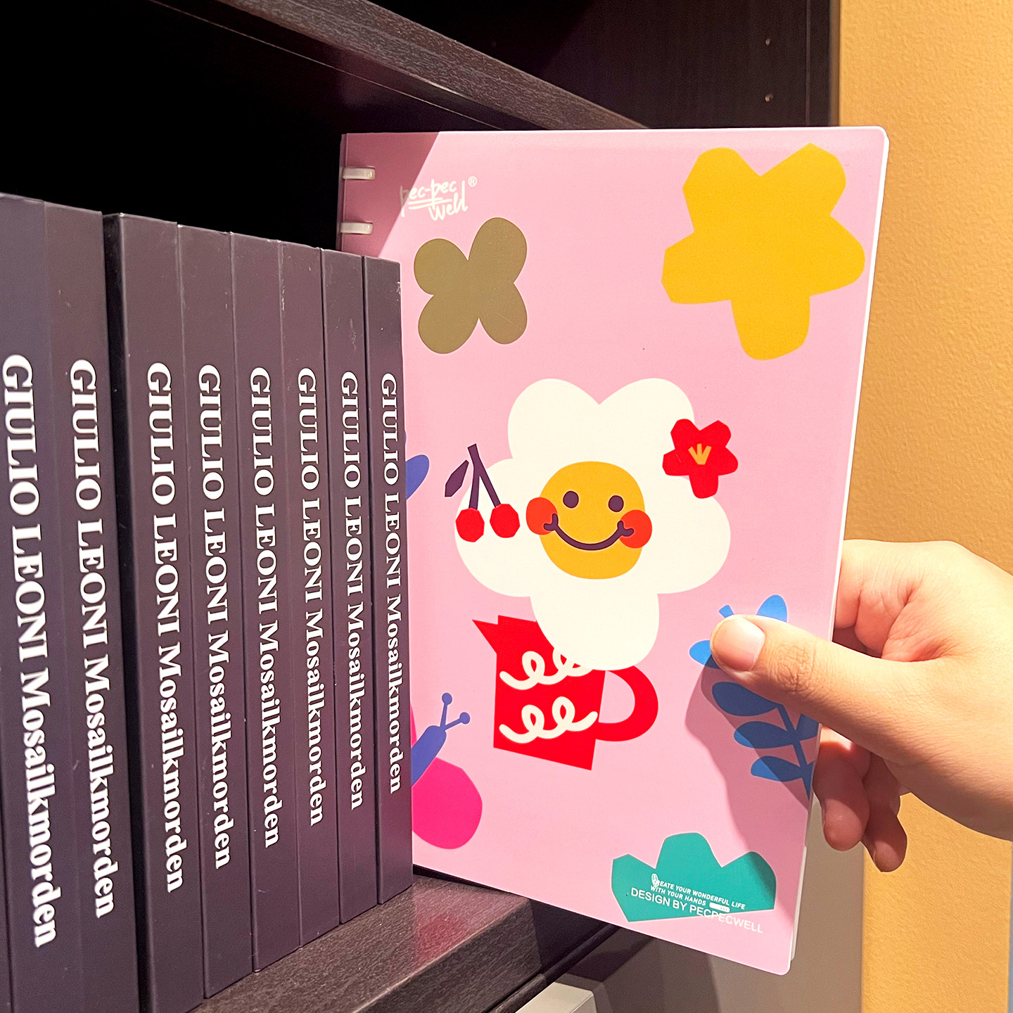PECPECWELL花花系列6爪活页笔记本卡通笑脸笔记本B5活页本可爱花朵图案记事本可拆卸内页小清新简约手账本