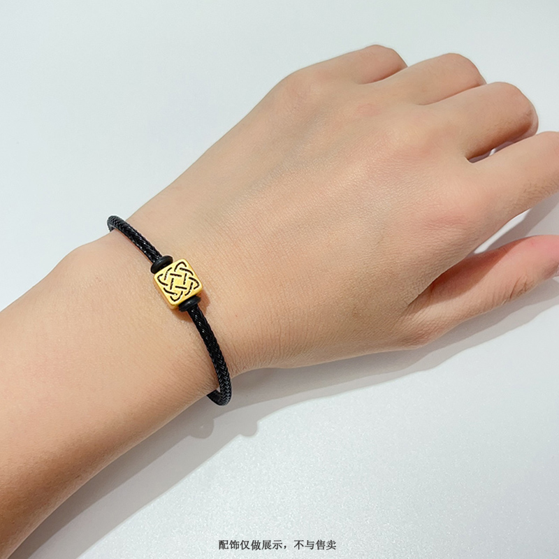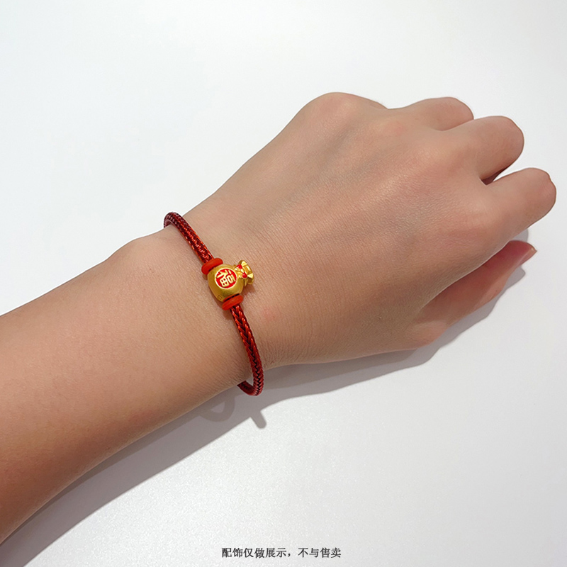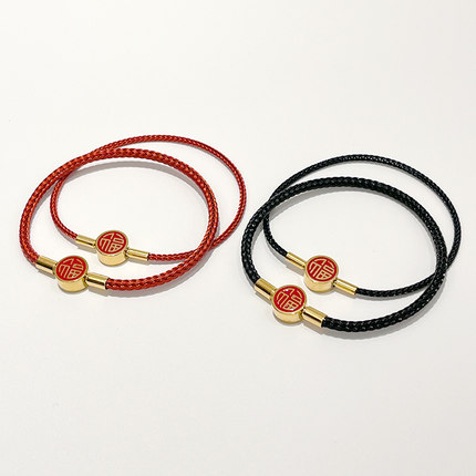 防水福字扣红色钢丝绳手绳龙可串珠3d硬金黄金转运珠编织红绳手链