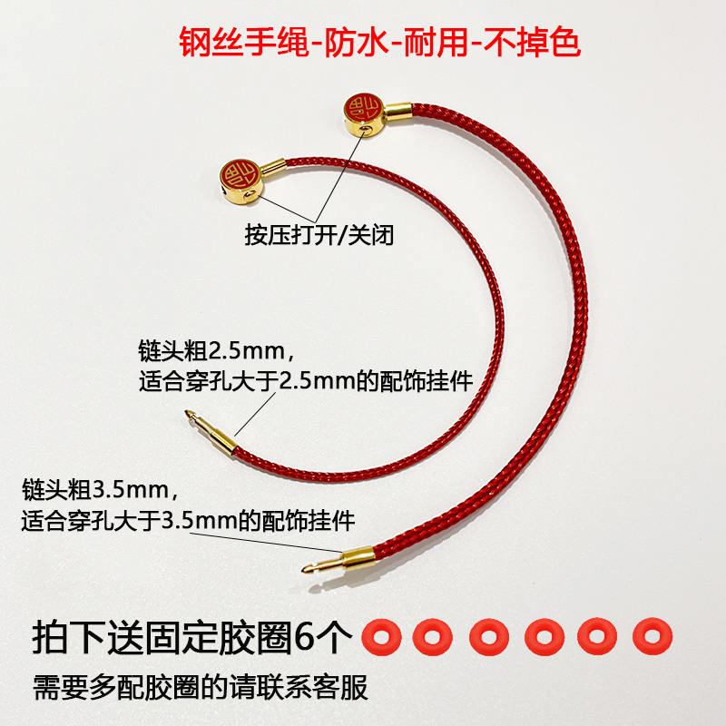 防水福字钢扣红色钢丝绳手绳手链