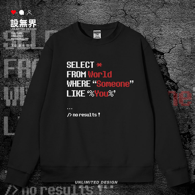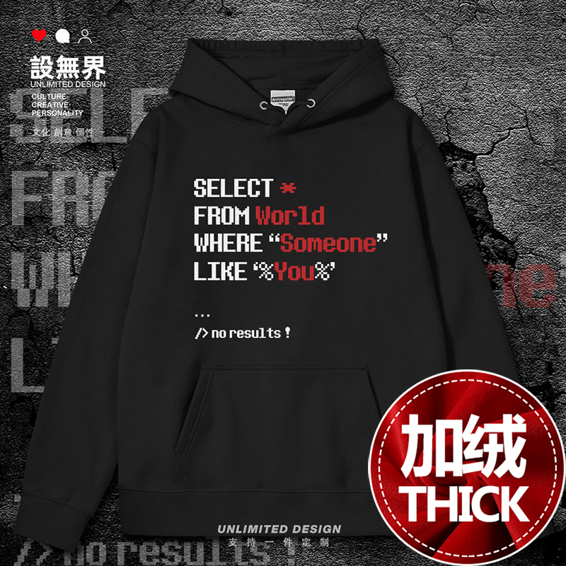 程序员编程语言英文创意连帽卫衣男女青年潮牌运动服外套设 无界
