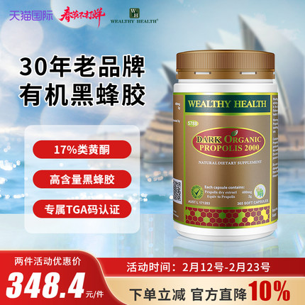 澳洲进口黑蜂胶软胶囊wealthy health液体原胶天然高浓度365粒