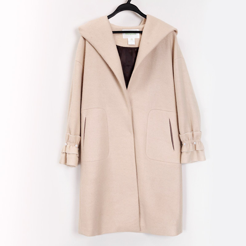 朵以秋冬装甜美气质中长款毛呢大衣大翻领连帽外套风衣33DD703031