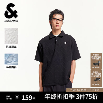 杰克琼斯男装25年秋季新款polo衫提花肌理静奢翻海鸥领短袖T恤衫