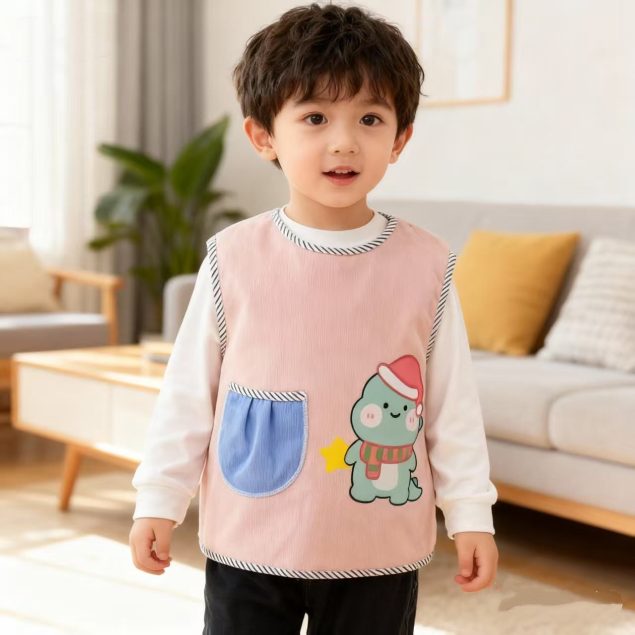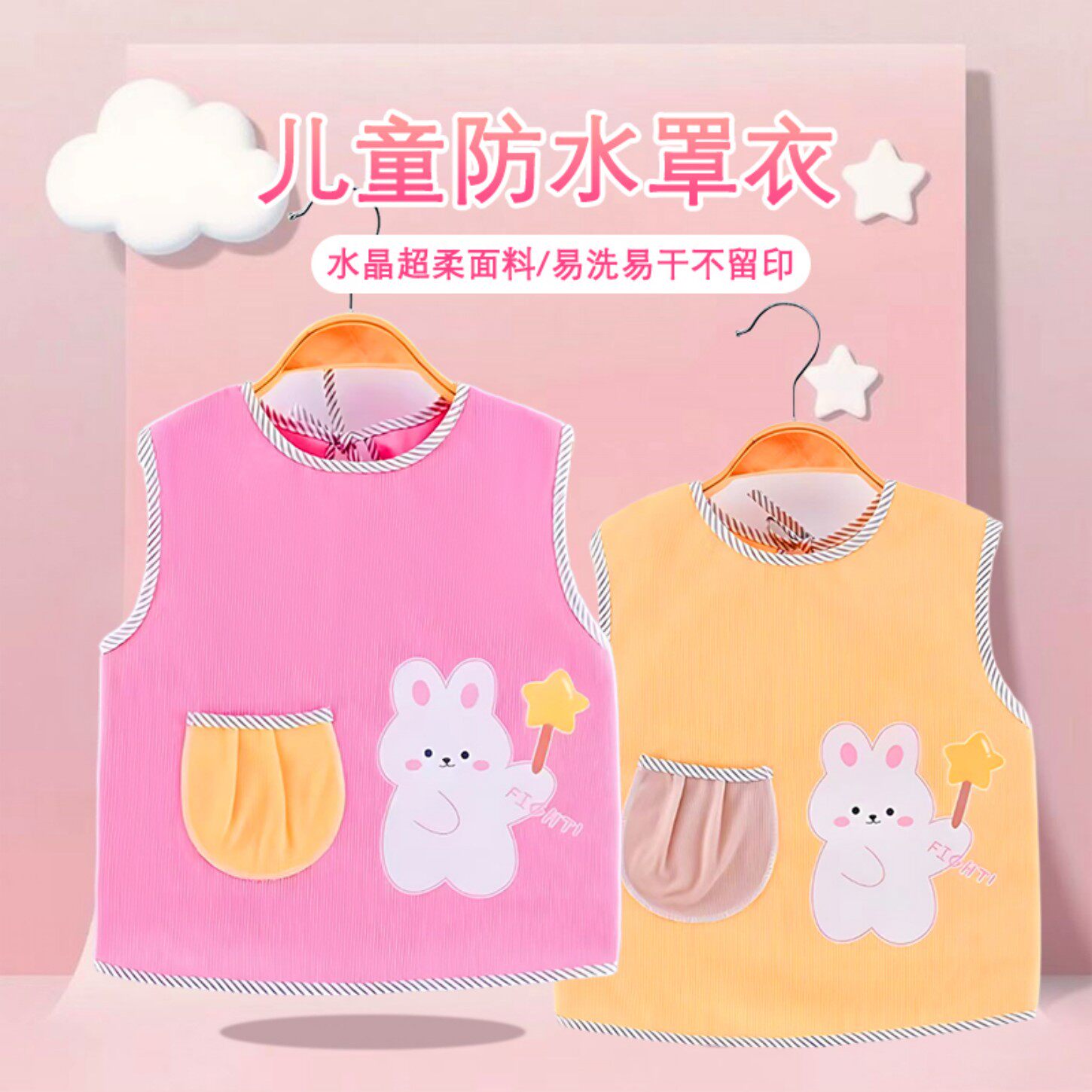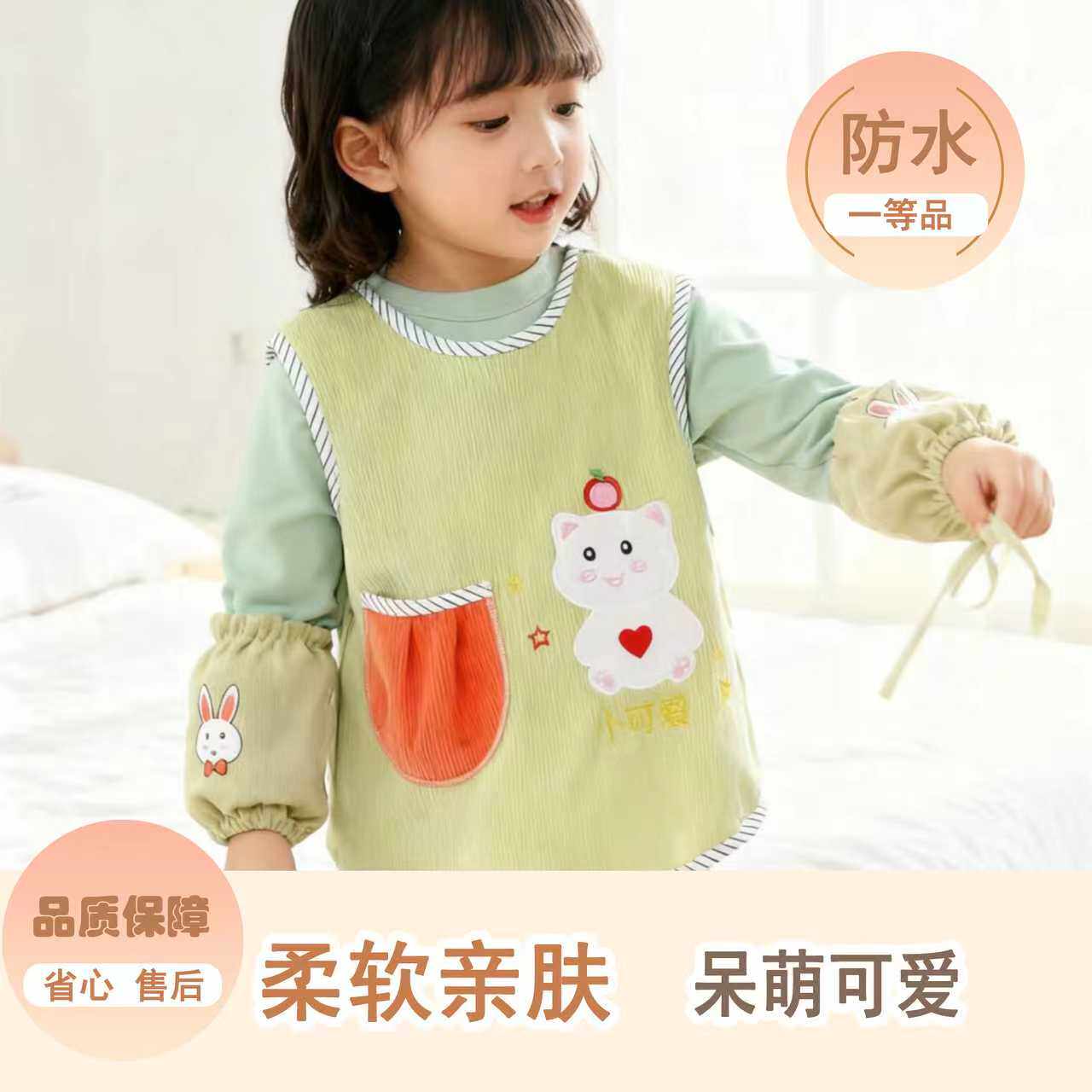 秋冬新款儿童卡通防水防油无袖罩衣宝宝防污易洗超柔反穿衣围兜