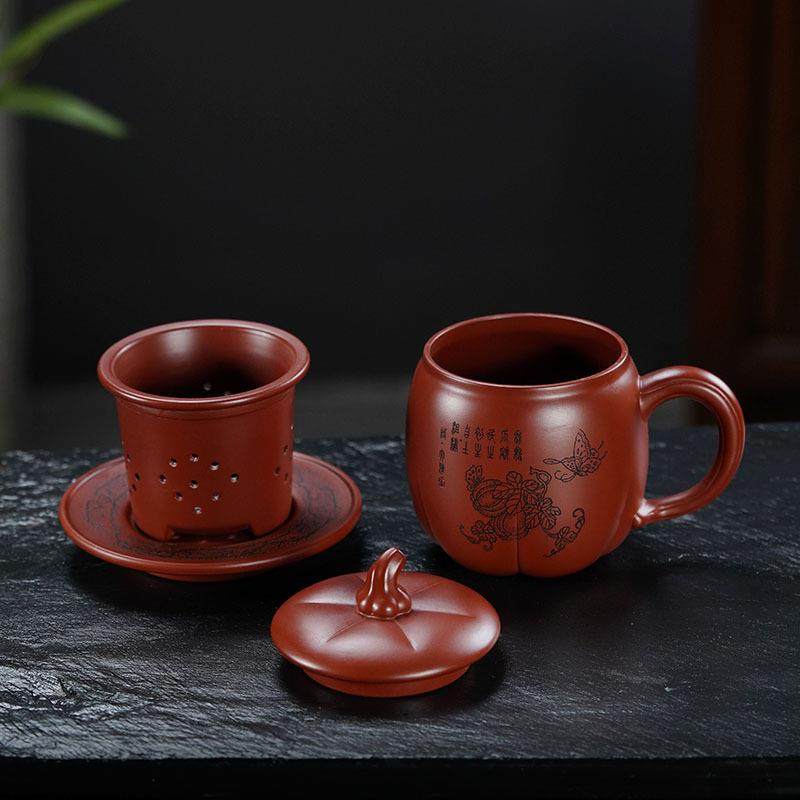 高端紫砂杯盖杯内胆过滤茶水泡茶杯子茶具南瓜盖杯新款主人杯男士