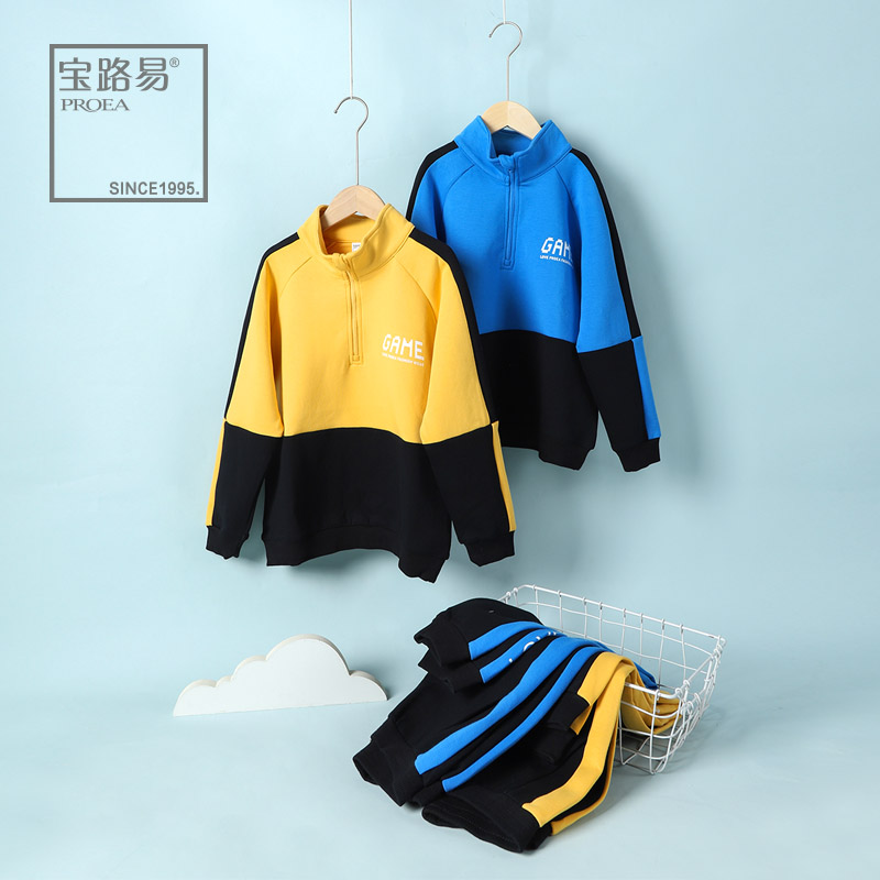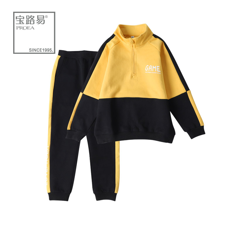 宝路易男童拼色针织套装男大童秋冬款运动套头卫衣裤子洋气儿童装