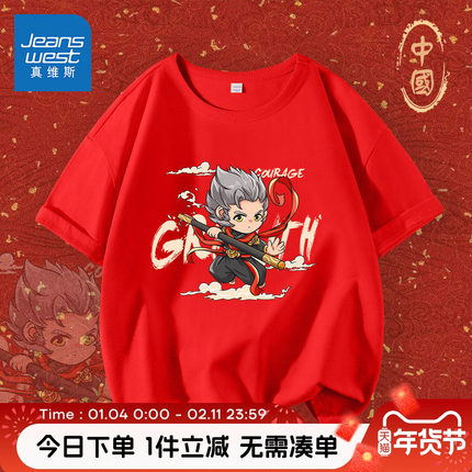 真维斯童装男童短袖t恤纯棉大童夏季悟空国潮服装儿童夏装体恤衫