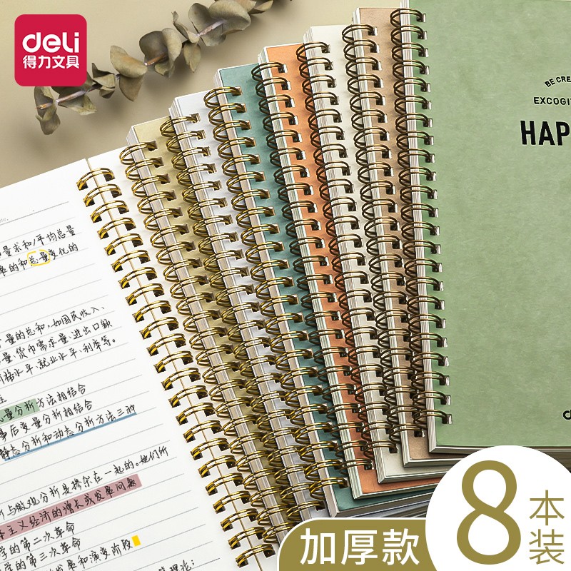 得力笔记本子螺旋本简约ins风线圈本子高颜值B5学生错题本记录本精致日记考研活页本A5加厚个性创意文具新款
