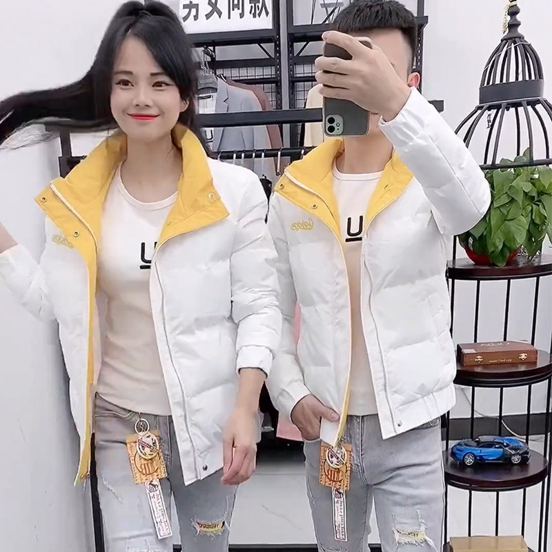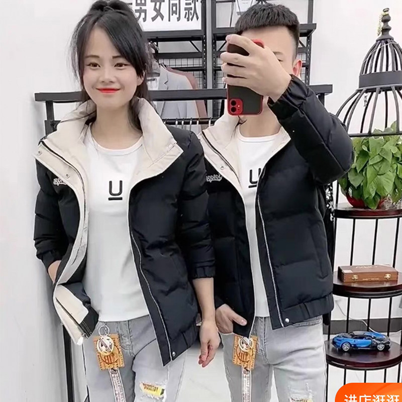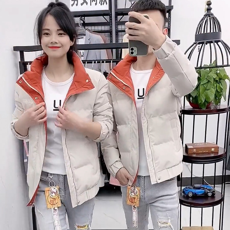 潮流拼色外套男冬季百搭韩版加厚立领棉服短款修身时尚保暖棉衣男