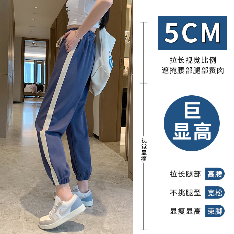 灰色运动裤女夏季薄款宽松束脚卫裤直筒九分2022夏天灯笼休闲裤子