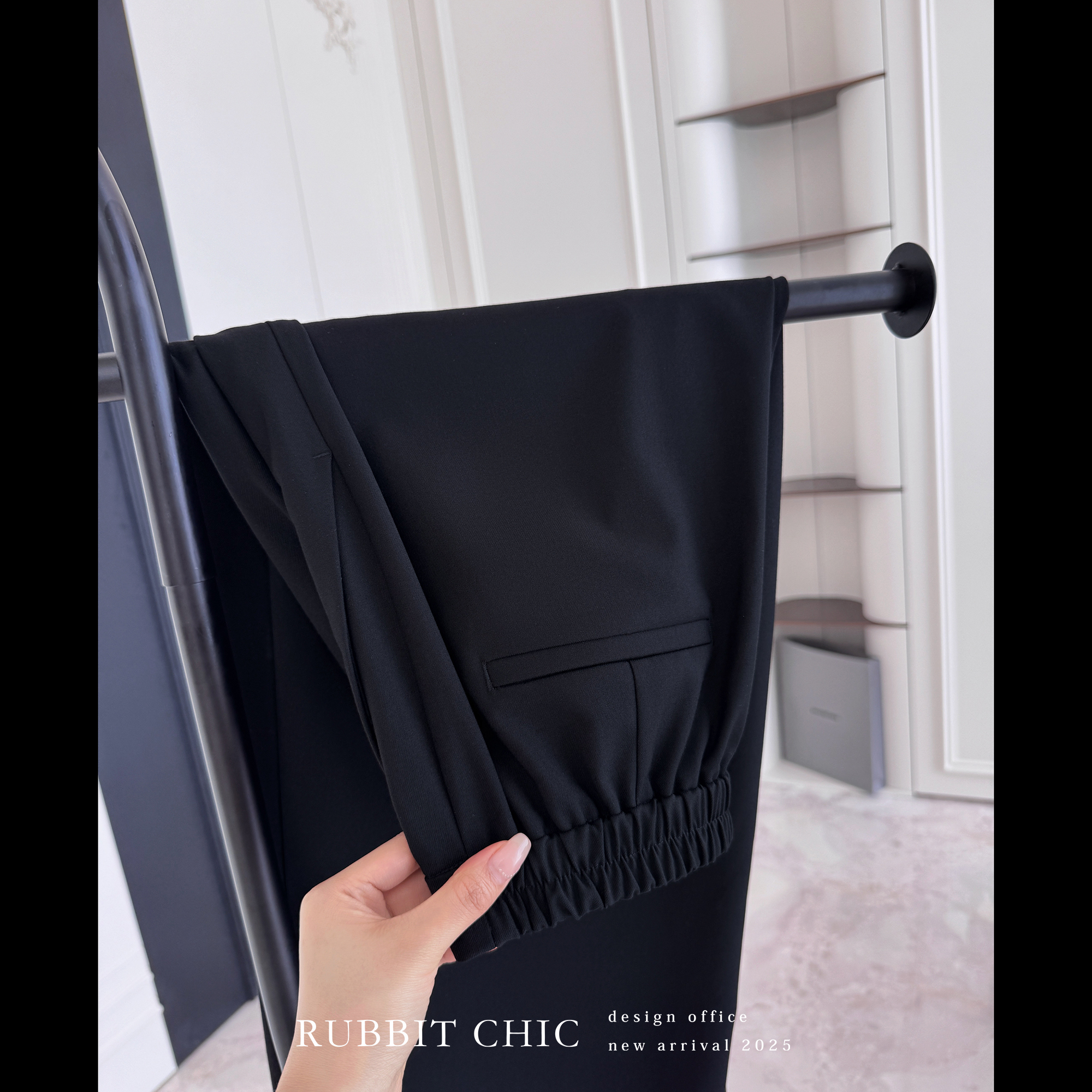 RUBBIT经典易打理 高腰密织羊毛混纺西装裤 通勤休闲长裤女