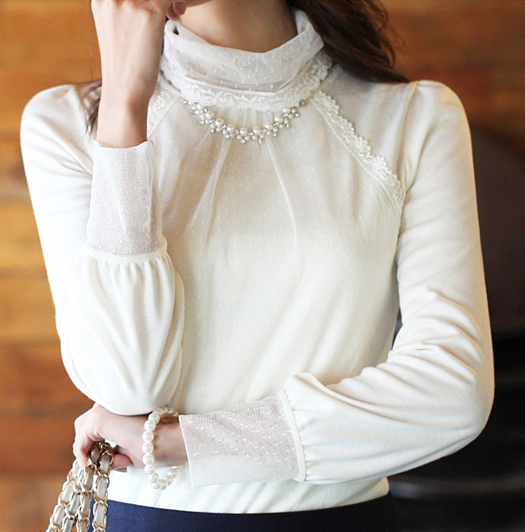 2016秋冬纯棉加绒加厚高领蕾丝长袖打底衫女大码女装长袖T恤上衣