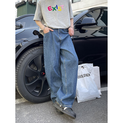 PLTH*韩系复古水洗直筒休闲宽松中腰百搭牛仔裤男女时尚街头长裤
