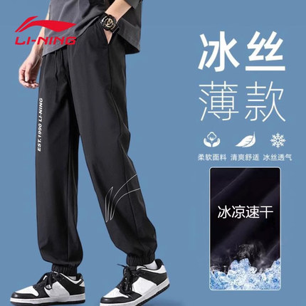 李宁运动裤男夏季薄款速干裤子男款冰丝宽松束脚裤青少年休闲长裤