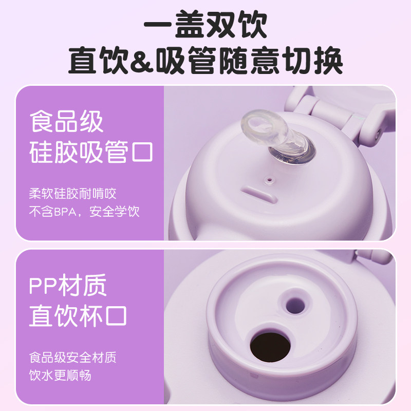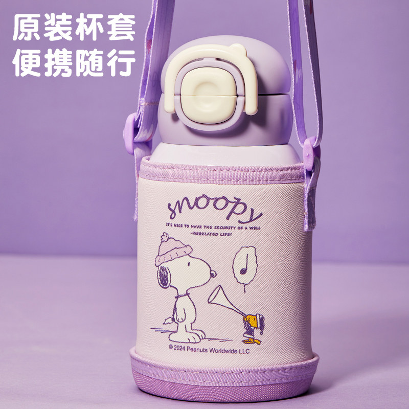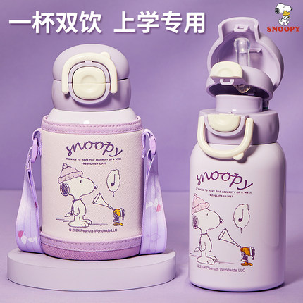 史努比儿童保温杯带吸管杯子316食品级女孩小学生上学专用双饮杯