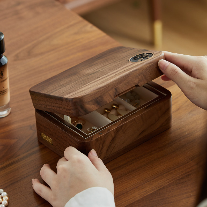 胡桃木便携式双层大容量首饰盒珠宝盒耳钉耳环手链戒指复古收纳盒