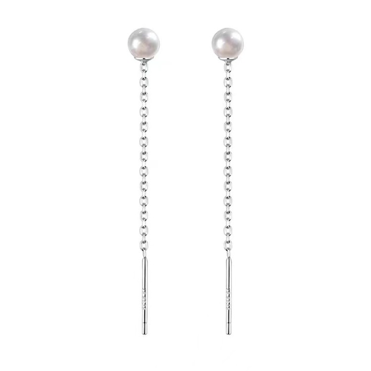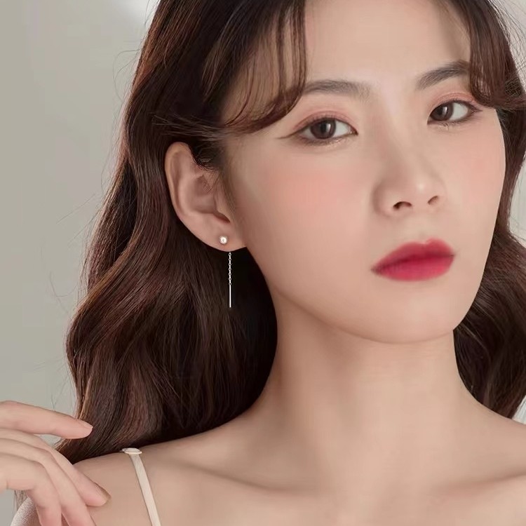 925纯银珍珠耳线气质流苏耳坠耳钉女2024年新款夏季耳饰
