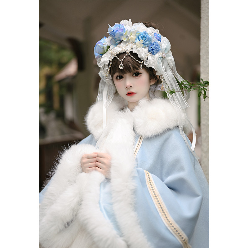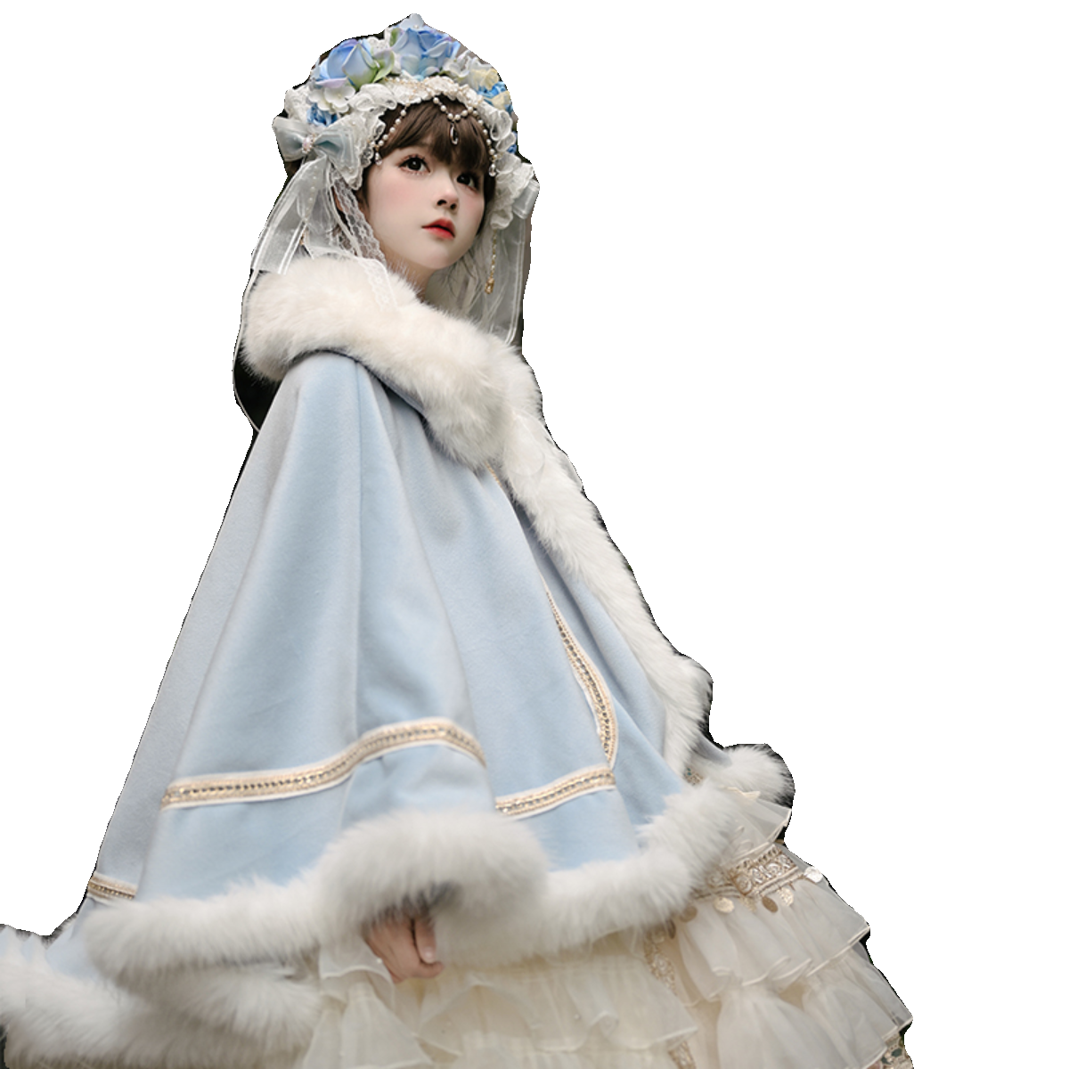 正版原创lolita毛呢外套【雪花谣】国牌毛领斗篷大衣披肩外套全款