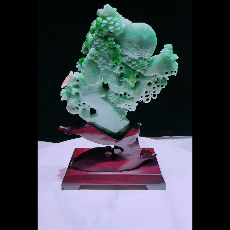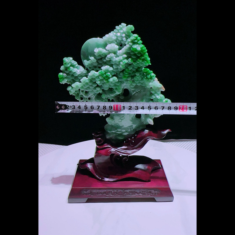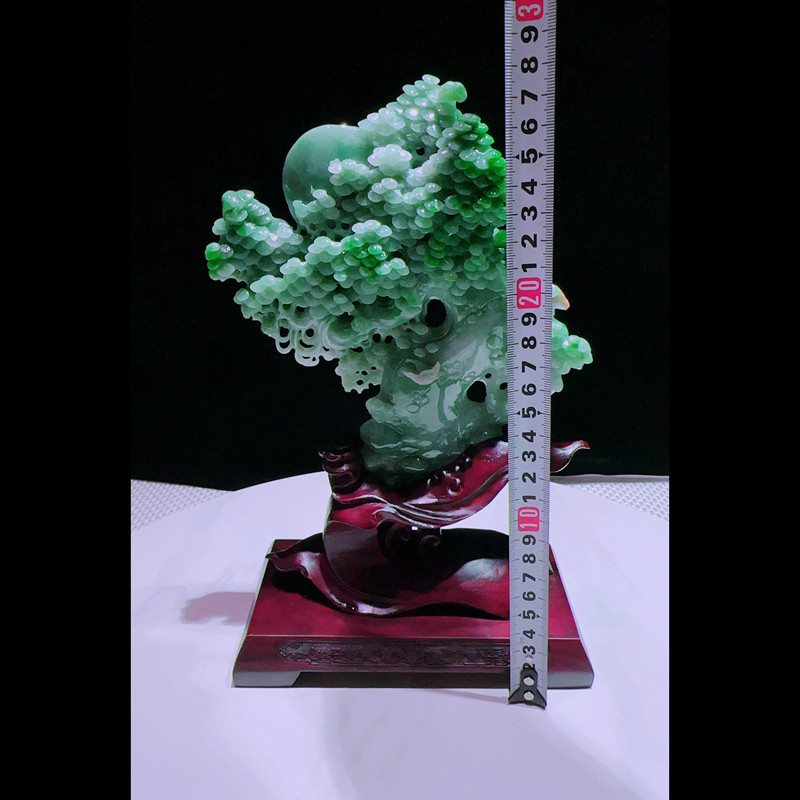 缅甸天然A货玉石翡翠孤品 精雕老坑满色阳绿万年长青发财树摆件