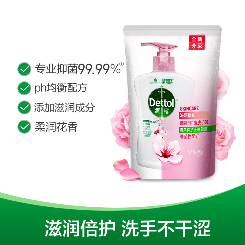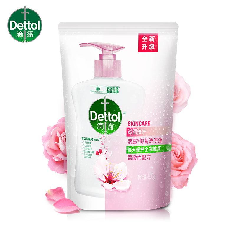 滴露抑菌洗手液家用实惠儿童非免洗滋润倍护香型450g袋补充替换装