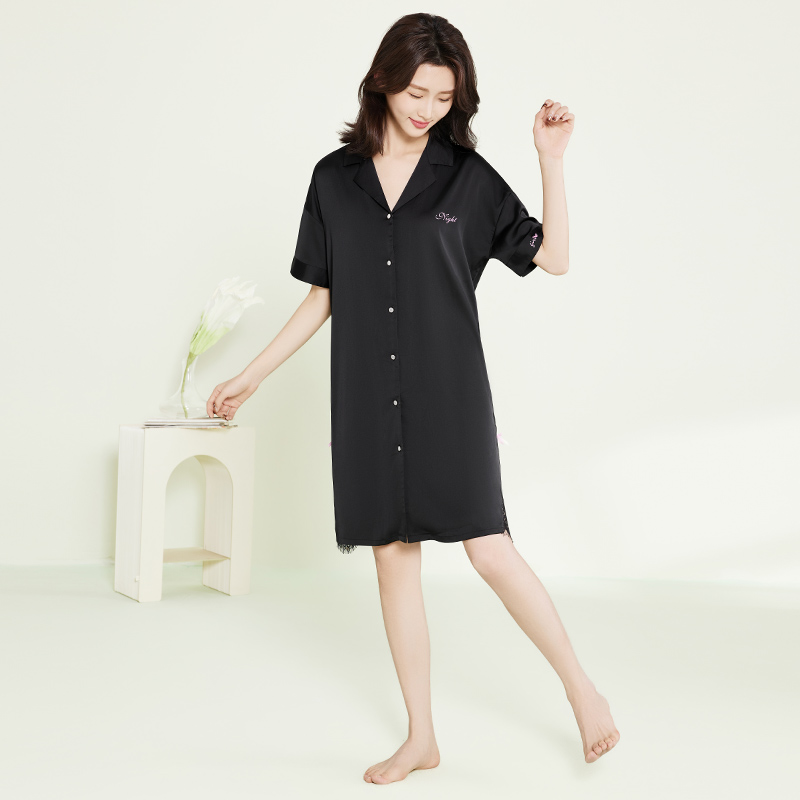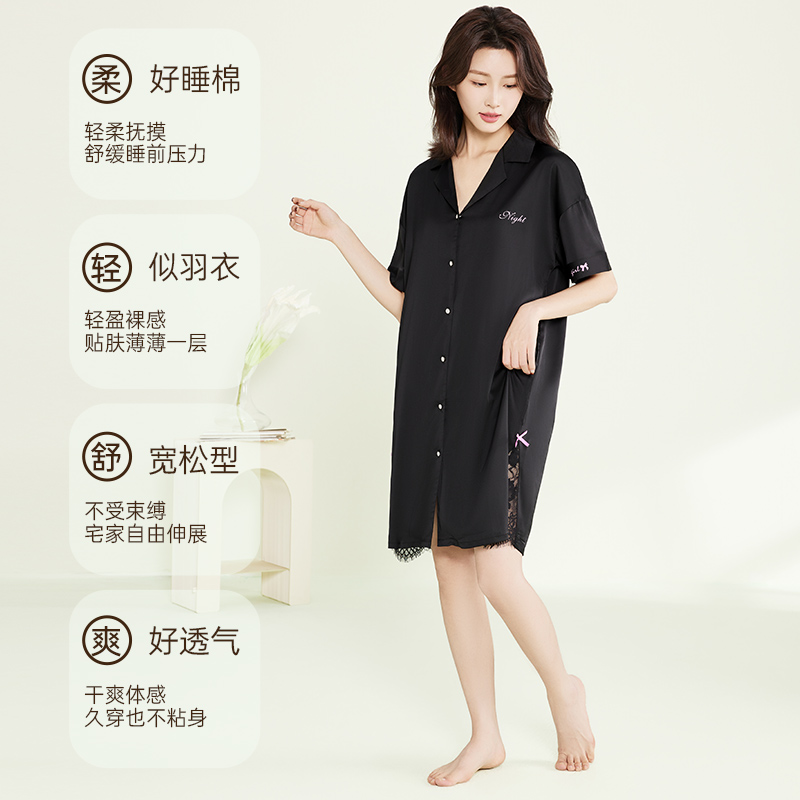 玛伦萨2025夏季新款睡裙女衬衫裙中长款翻领系扣性感女士家居服