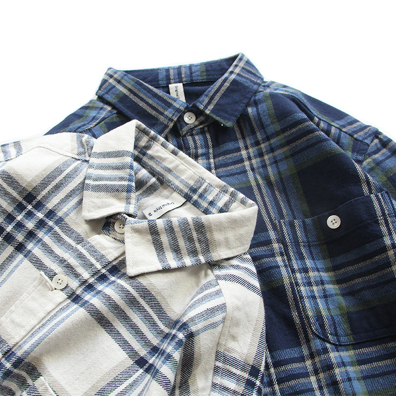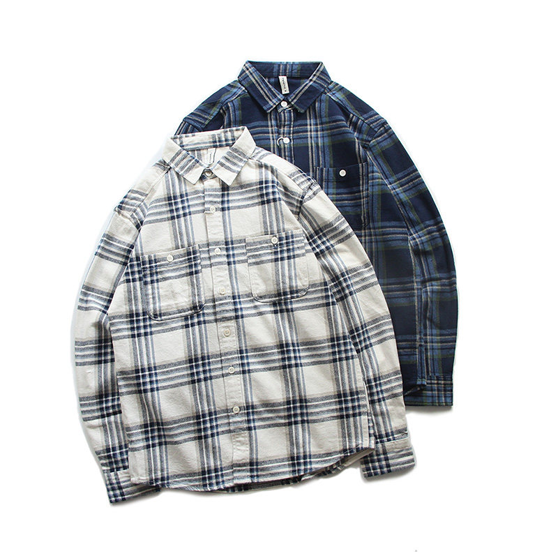美式休闲复古格子长袖衬衫