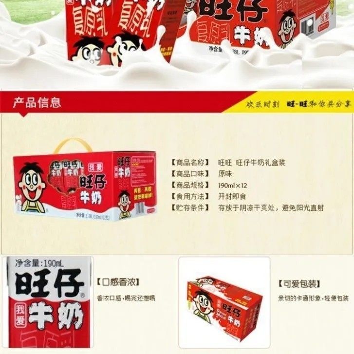 旺仔牛奶190ml*12盒儿童成长牛奶