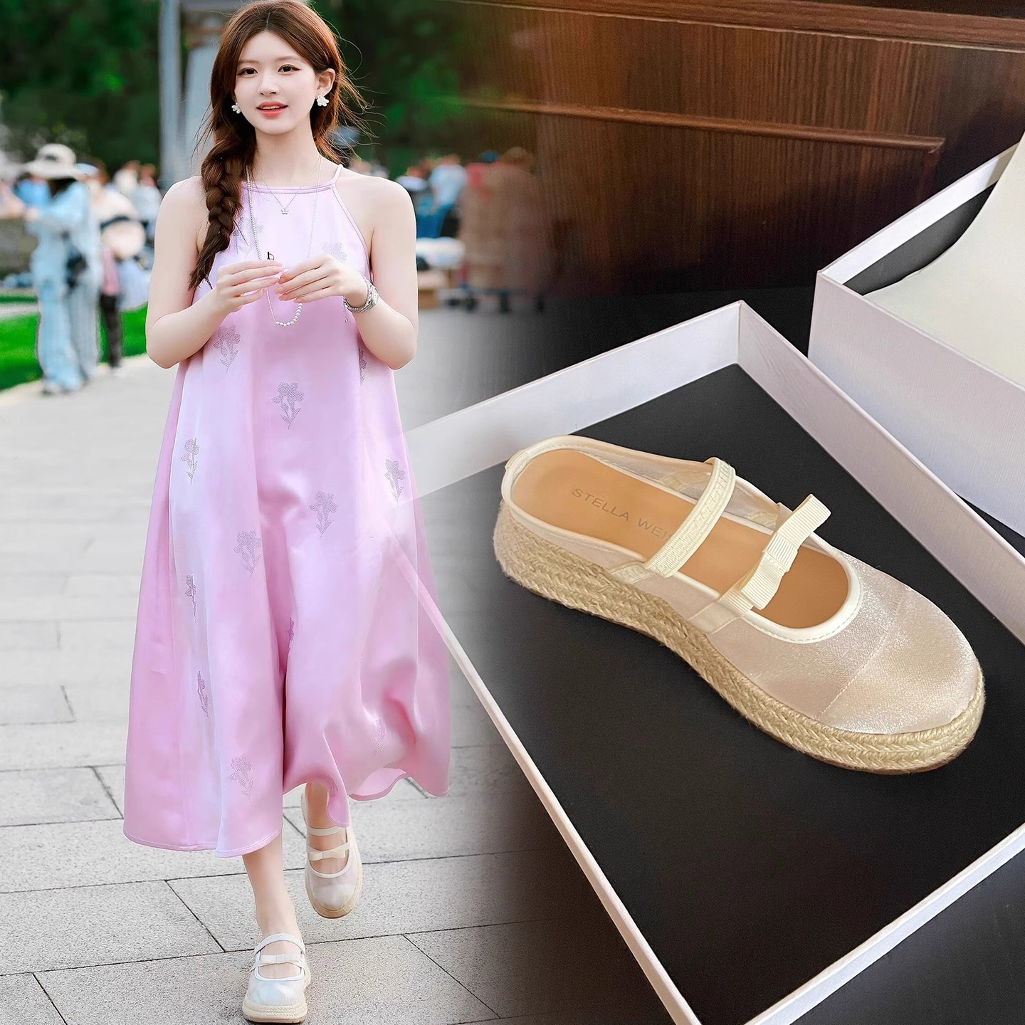 【断码捡漏】厚底坡跟包头拖鞋女2025夏季新款网纱休闲玛丽珍凉鞋