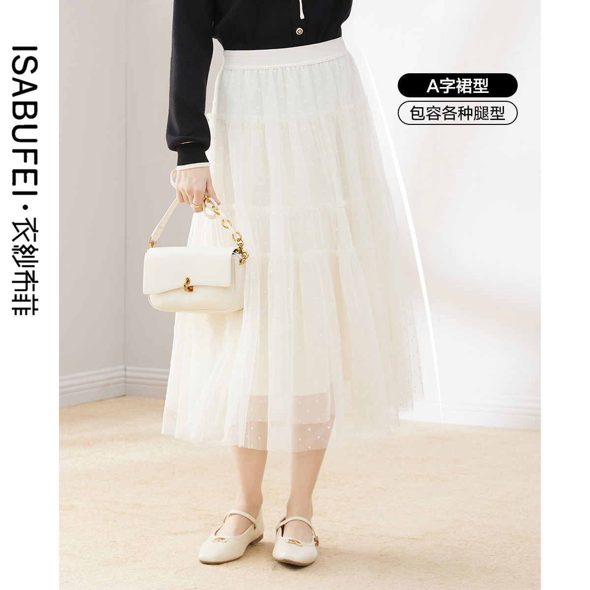 衣纱布菲璃纱 仙女百搭白色网纱半身裙女新款秋冬季a字蛋糕裙