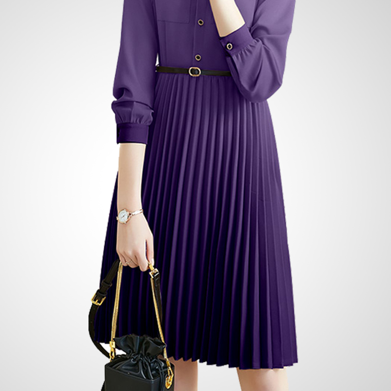 名媛气质连衣裙秋季2025年新款POLO领渐变紫时尚百搭收腰百褶裙子