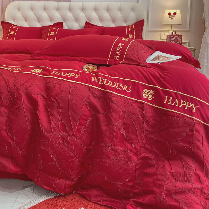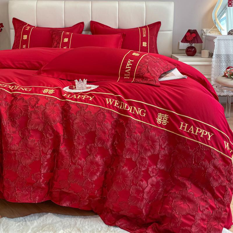 婚庆四件套大红色棉床单被套被结婚嫁新婚房床上用品